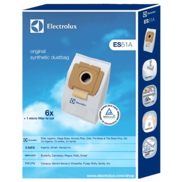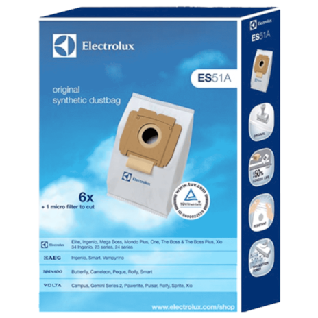 Kantong debu berkualitas tinggi, berkapasitas besar yang memberikan aliran udara optimal dan daya isap tinggi yang kontinu selama usia kerja kantong.